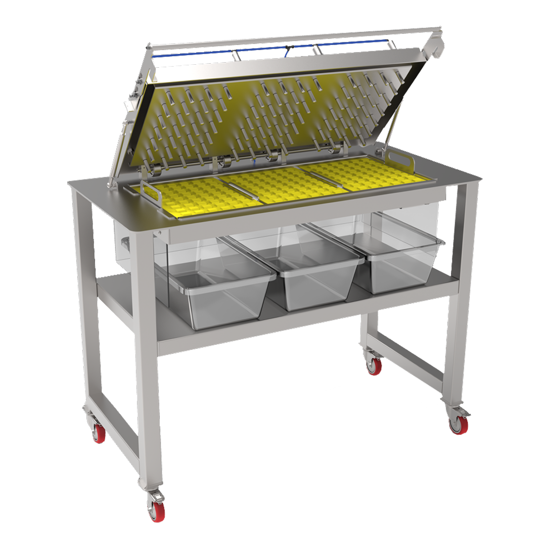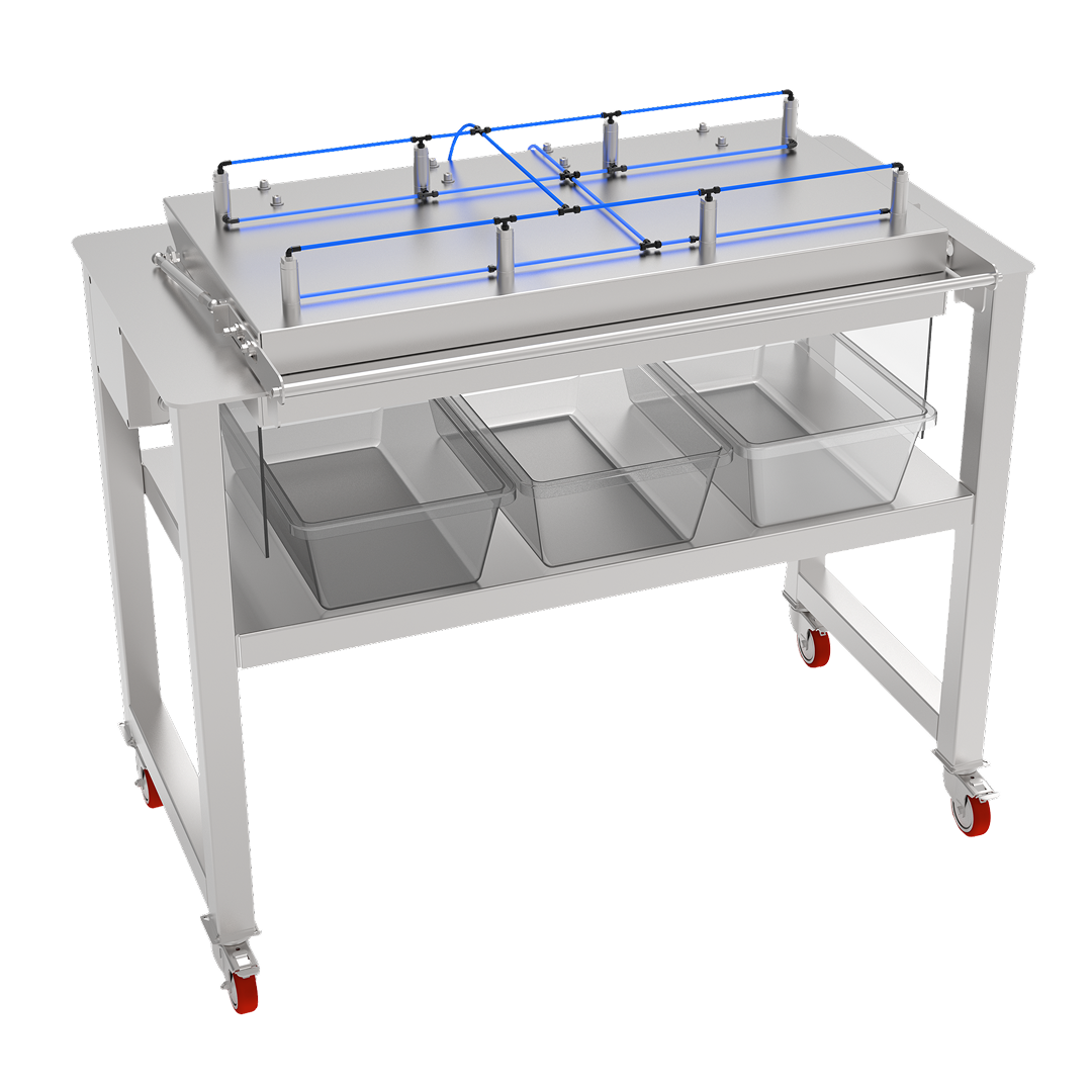 Demolds 46,500 gummies/hour. Reduces repetitive strain and labor costs. Stainless-steel build for reliability.
